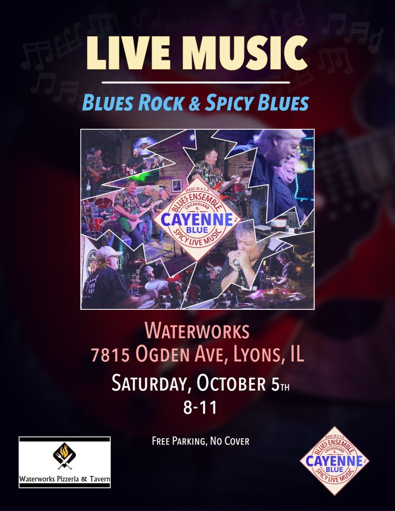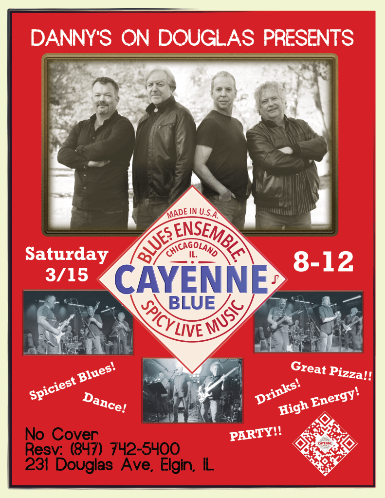 Cayenne Blue’s at the ‘burbs favorite home of the Blues. Craft Beers, Cocktails, Wings, & Burgers, alongside Cayenne Blue’s spicy blues rock – a veritable feast for the musical tastebuds!